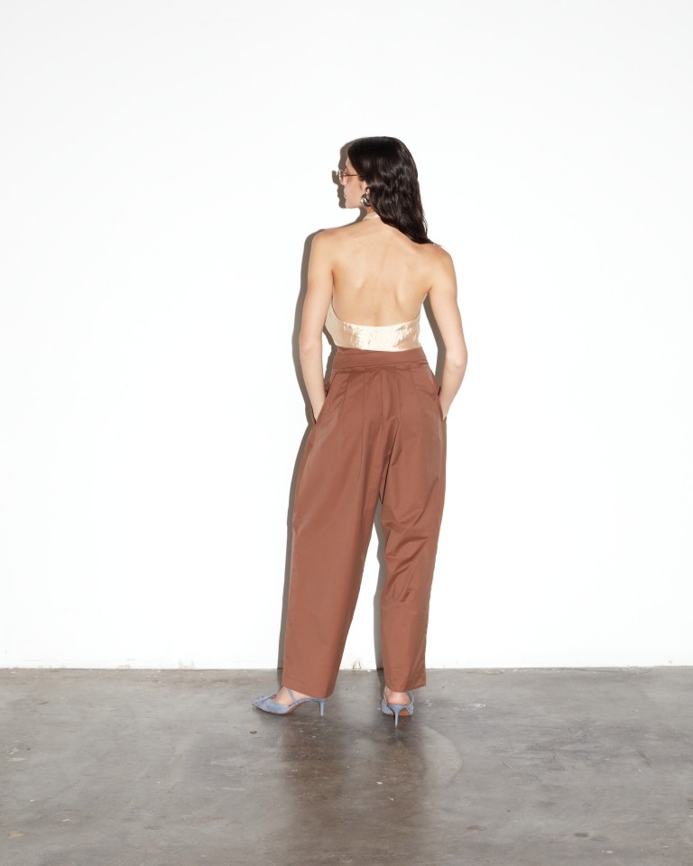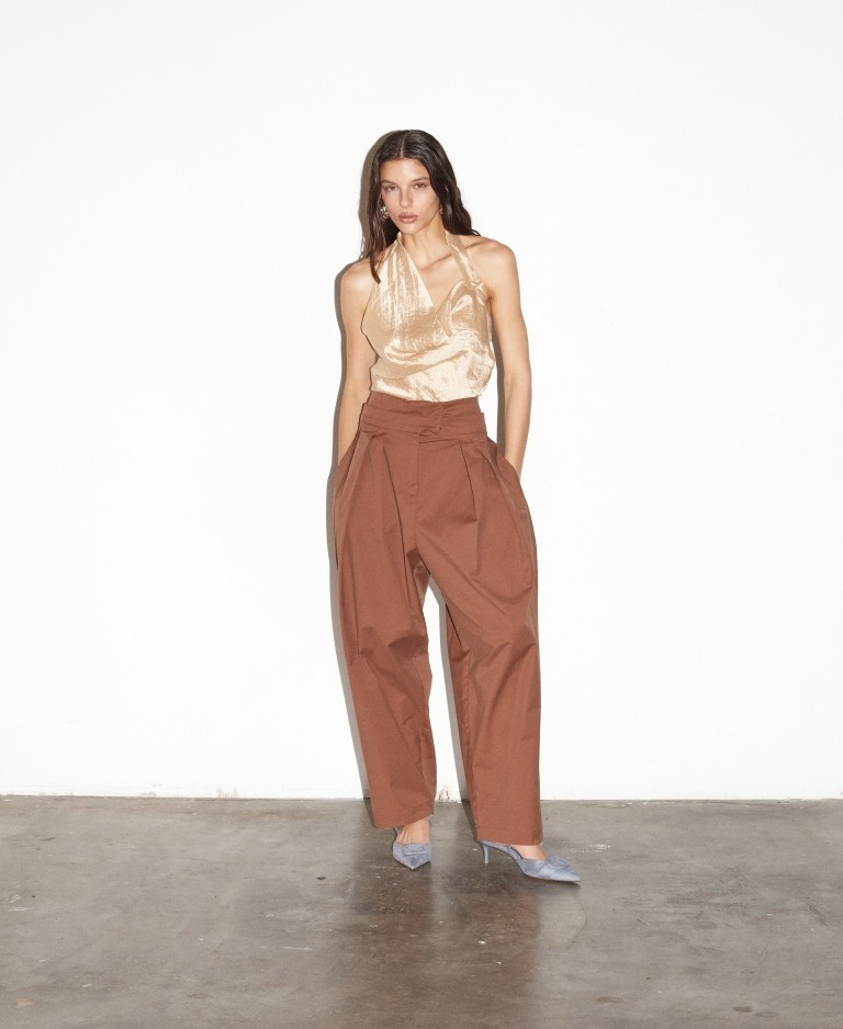 Top frente única em seda metalizada.